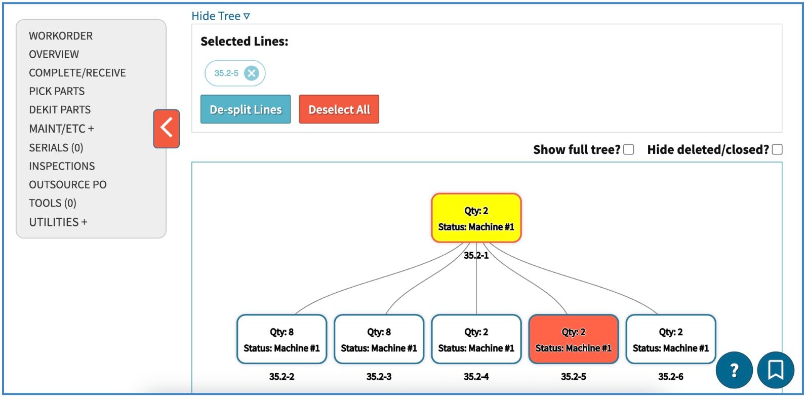 Enhancements include: 1- assign a work location (at the time of work order split) to the work order you’re splitting off; 2- “tag” a split to ensure ease of reportability against specific kinds of splits; 3- print a customizable work order ticket/plate associated to the work order split you’re creating; 4- easily see a visual tree of splits which relate to one another via the original source of partial movement/split; 5- merge splits back into each other via this visual tree. Visit our guide here.