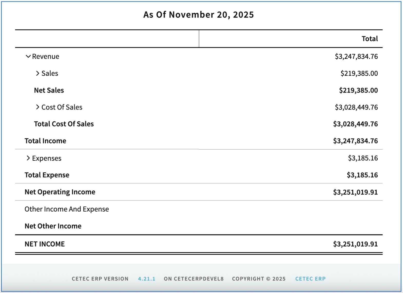 A longstanding design pattern for accounting reports in Cetec ERP was based on consistent feedback from users re: the propensity among CPAs/CFOs/Controllers to export their financial statements to Excel for inevitable further manipulation and presentation of the report.