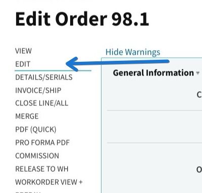 Navigate to the open order you want to pause. In the left-hand navigation, click Edit to open the order’s editable screens.
