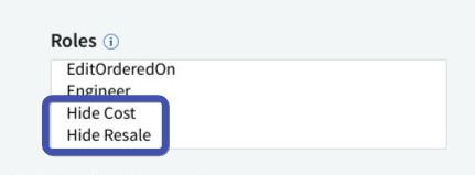 If the user needs access again in the future, remove the “Hide Resale” and or “Hide Cost” role from the user record and submit the change. The restriction will be lifted when the role is no longer assigned.