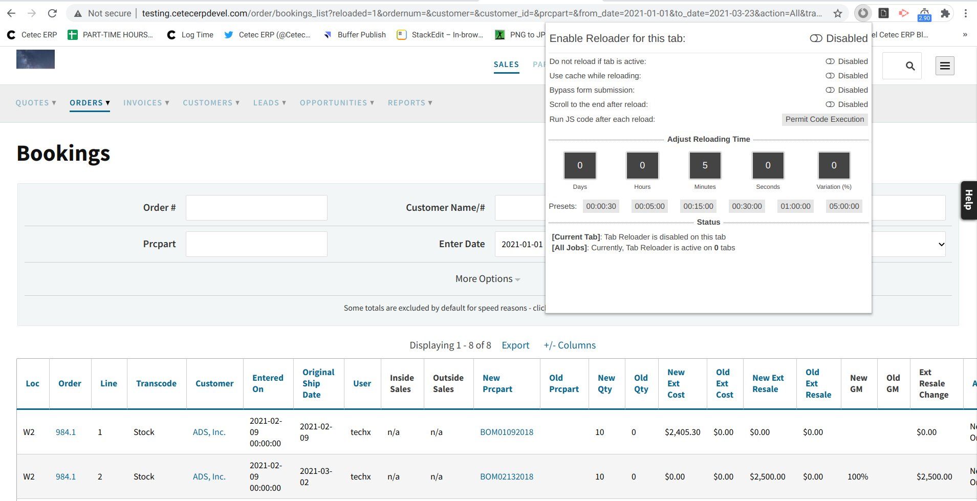 After downloading an auto-refresh or tab reloader extension from Chrome, users can implement an auto-refresh rule for a tab in which they have open, for instance, their Bookings report. Then, bada boom, you've got yourself a report with updated, accurate information whenever you need it. Which would come in extremely handy in the case of Bookings, since that covers any line item changes made to open orders each day!