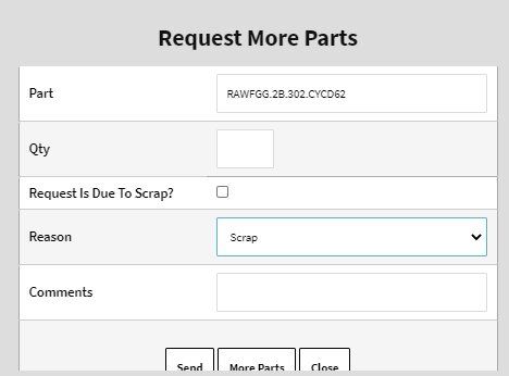 In most cases, your team should use the Scrap reason code whenever a request is created because material was scrapped. Doing so keeps the Parts Requests list readable and gives supervisors a quick way to review where scrap is driving additional demand for material.